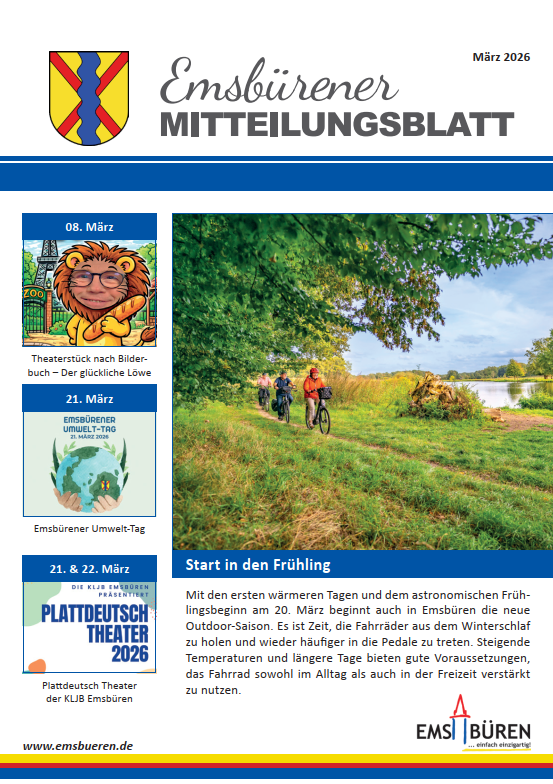 Die Gemeinde Emsbüren ist Herausgeber des monatlich erscheinenden "Mitteilungsblattes der Gemeinde Emsbüren".